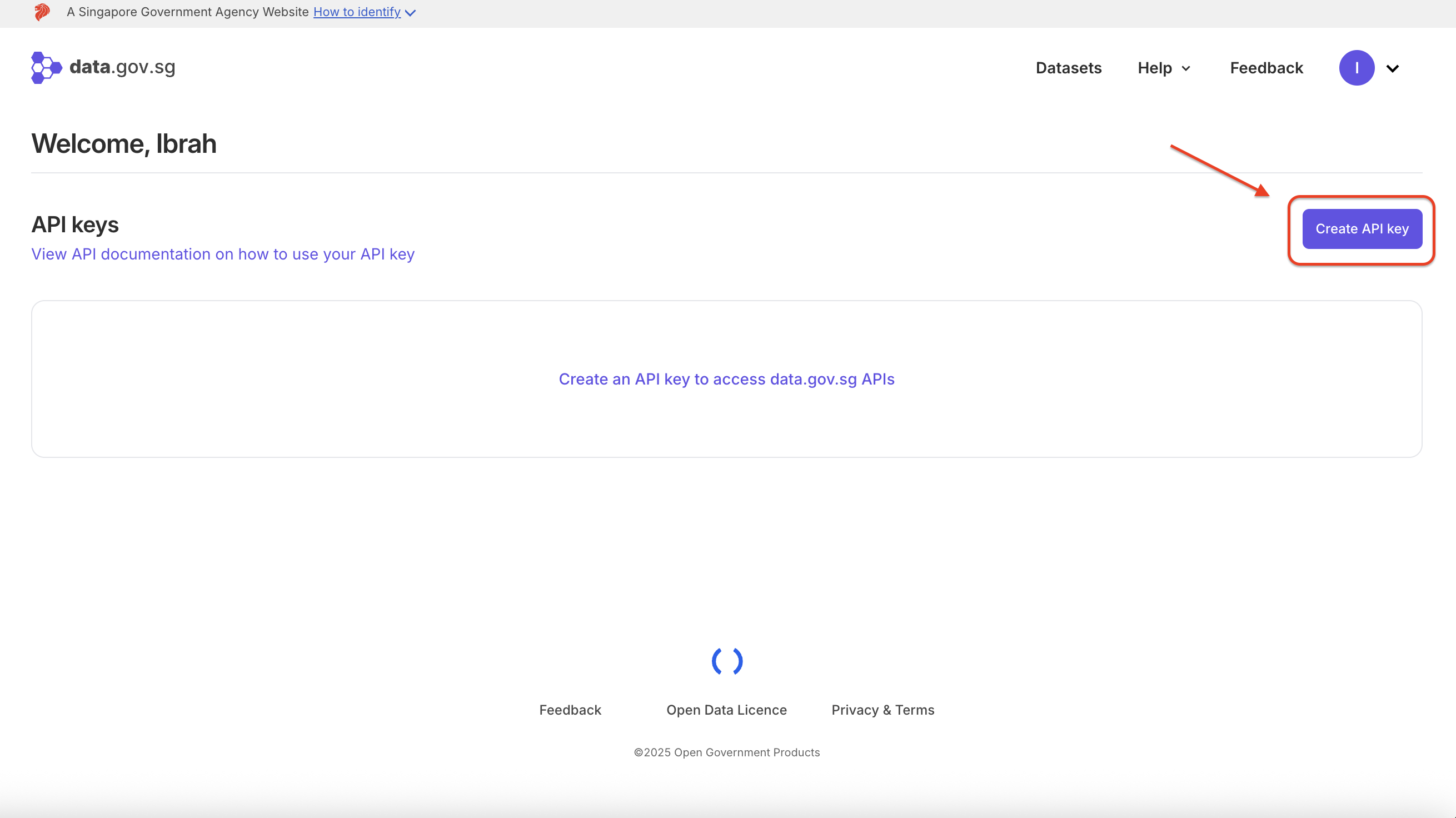 6. Click on Create API Key