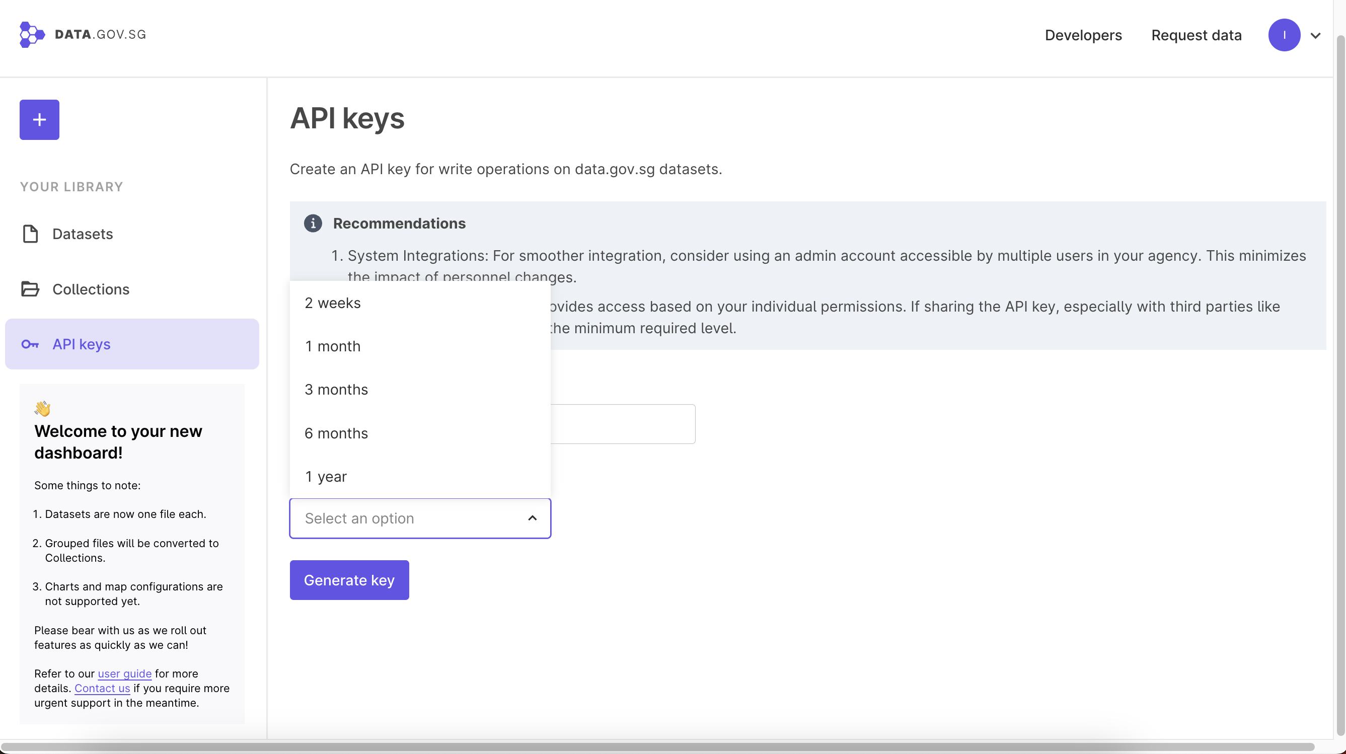 Indicate the lifespan of your key via selecting an option on the drop down menu, under