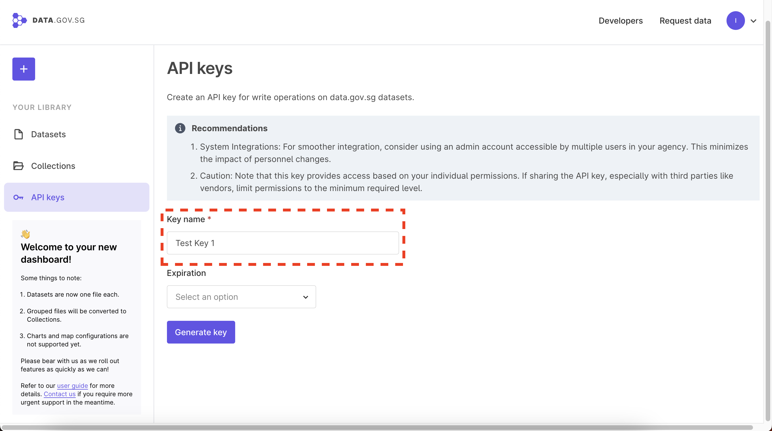 Please manage your API keys securely - do not share these with your colleagues or vendors
